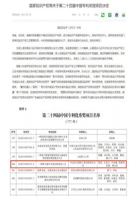 中國專利獎是我國專利領(lǐng)域的最高獎項,自1989年創(chuàng)立,迄今已成功舉辦24屆專利獎評選,遴選出一系列創(chuàng)新質(zhì)量高、運用效益好、示范效應(yīng)強的專利項目,生動展現(xiàn)了我國知識產(chǎn)權(quán)事業(yè)發(fā)展的質(zhì)量導(dǎo)向、質(zhì)量追求和質(zhì)量成效,具有極高的公信力、代表性和影響力。